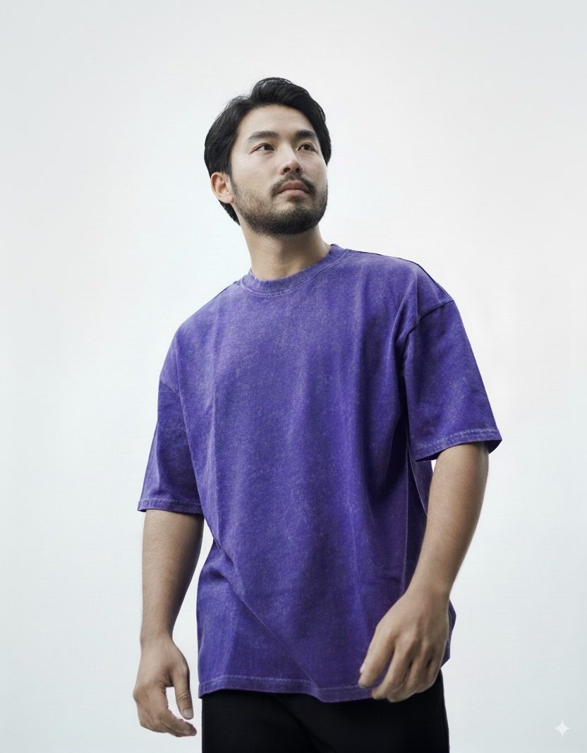 Acid Wash Drop Shoulder-Purple